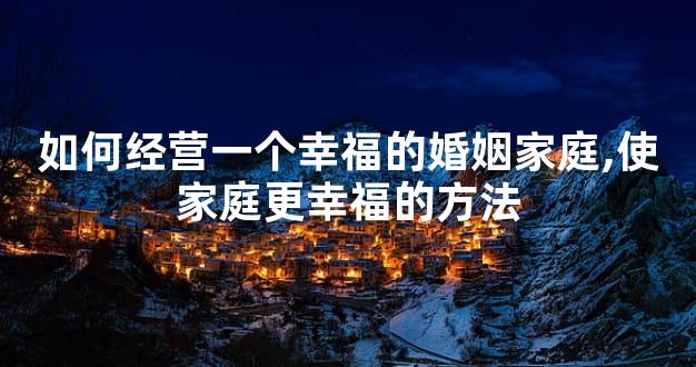 如何经营一个幸福的婚姻家庭,使家庭更幸福的方法