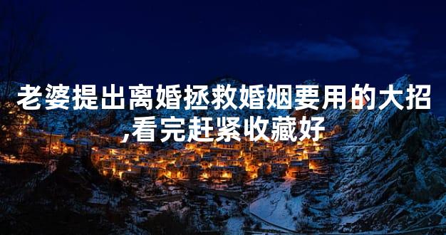 老婆提出离婚拯救婚姻要用的大招,看完赶紧收藏好