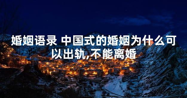 婚姻语录 中国式的婚姻为什么可以出轨,不能离婚